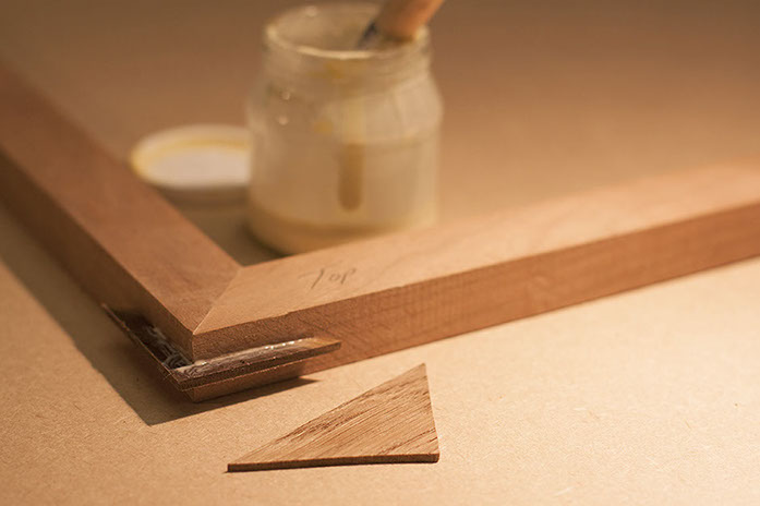 The frame is then glued, clamped and left to dry.