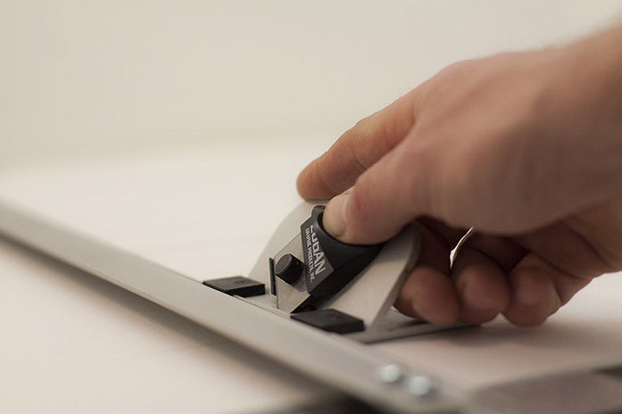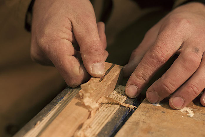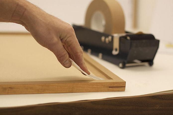 The sides of the frame are cut and then precisely trimmed to ensure a perfect mitre join.