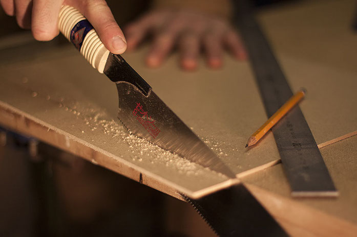 When the glue is set the tabs are then cut flush with a Japanese hand saw.