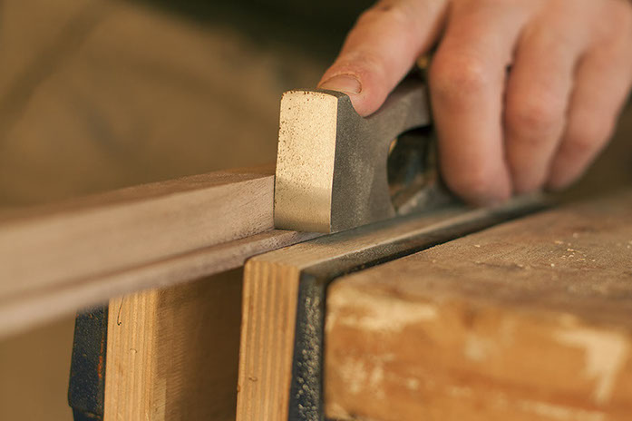 The frame corners are then hand-planed flat.
